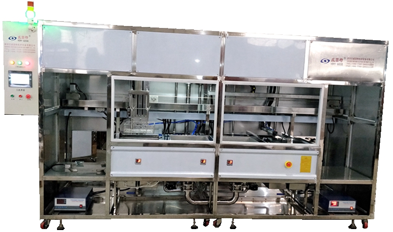威固特生產商研發的-發動機零部件除油除垢超聲波清洗機深圳市威固特發動機零部件除油除垢超聲波清洗機設備配置有循環過濾系統、觸摸屏系統、拋動系統、噴淋系統、超聲波清洗系統、定時調溫系統。采用清洗劑洗滌、純水漂洗、機械手完成工序間的傳遞。設有自動上、下料系統,輕松實現整機功能。